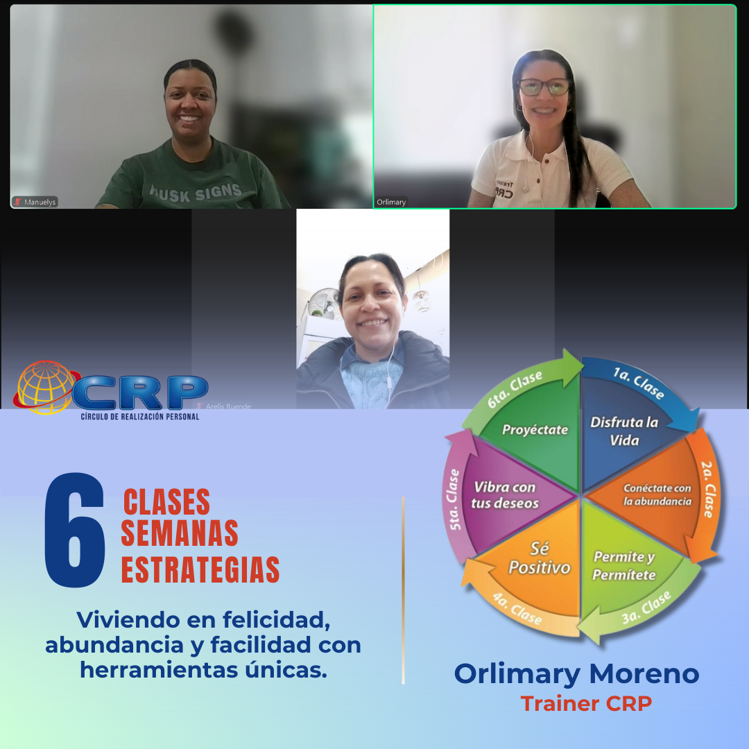 Aún con el deseo de “obtener nuevas herramientas”, inició su Formación de Practicante CRP, concibiéndola como una fascinante filosofía de vida y un programa de crecimiento personal avanzado que brinda los resultados deseados, palpables y rápidos. Actualmente, ya formada como Coach Vibracional y Trainer en CRP decidió transmitir a otros de manera profesional, a través de estas 6 extraordinarias estrategias, que sí puedes crear una vida maravillosa más allá de las circunstancias presentes, que si puedes Ser feliz en el presente proyectando el futuro que deseas, que sí puedes obtener todo lo que tú deseas desde el sentir de Felicidad, Abundancia y Facilidad. Por eso y más, los invita a sus próximas formaciones que dictará de manera online y presencial, y desde ya les da la “Bienvenid@... A disfrutar de esta maravillosa experiencia!!!
